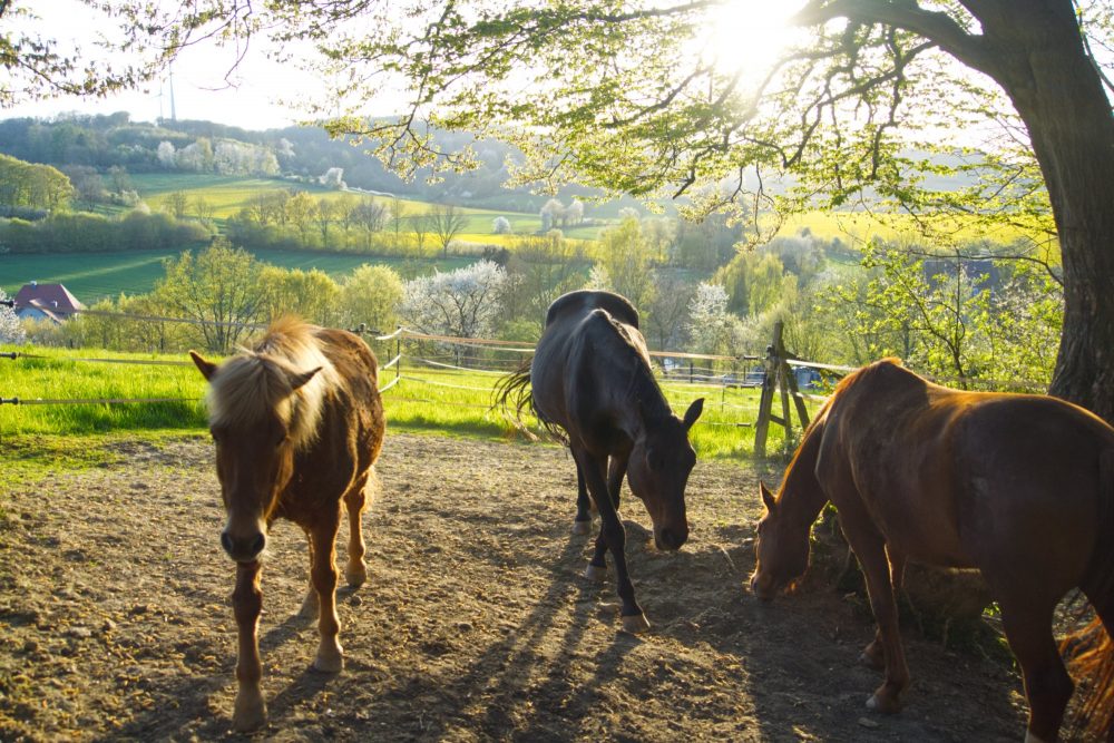 Pferde-Weide-Abendsonne