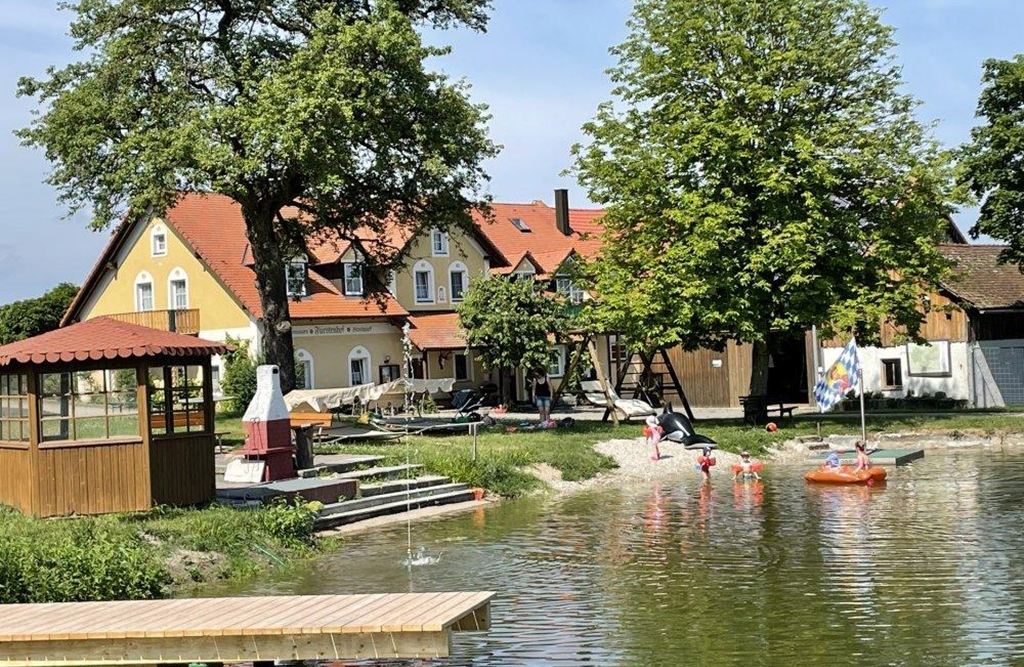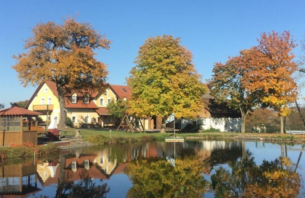 Direkt am Hof liegen drei Weiher, in einem davon könnt ihr im Sommer schwimmen, im Winter Eisstock schießen. Die vier Ferienwohnungen sind großzügig eingerichtet in einem eigenen Ferienhaus. Von dort aus schweift der Blick über den Weiher, übers Hirschgehege bis zu den Pferden auf der Koppel. Der komplette Hof ist bio-zertifiziert. Beste Bewertungen im Internet, "Top bewertet" von landsichten.de, da kommen in den Ferienzeiten viele Familien mit Kindern zum Fürstenhof im Oberpfälzer Wald nördlich vom Bayerischen Wald. In der "staden Zeit", der stillen Zeit, wird der Ferienhof gerne von befreundeten Paaren genutzt: um zu wandern, zu radeln, im Hallenbad oder in der Sauna zu relaxen oder im Partyraum zusammen zu feiern.